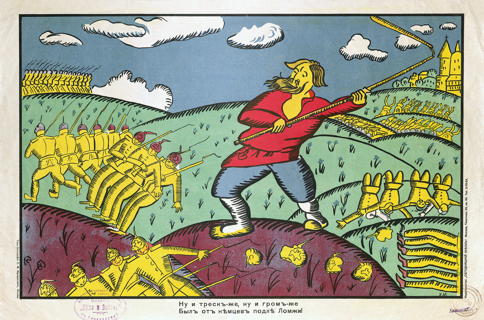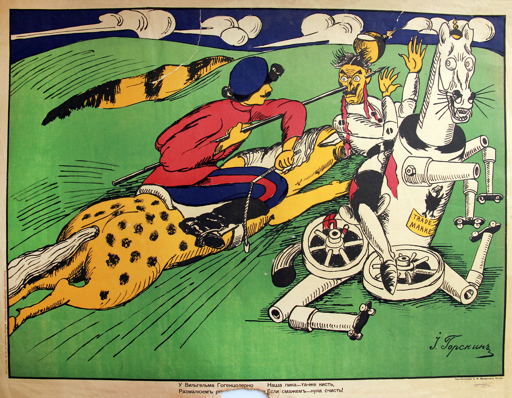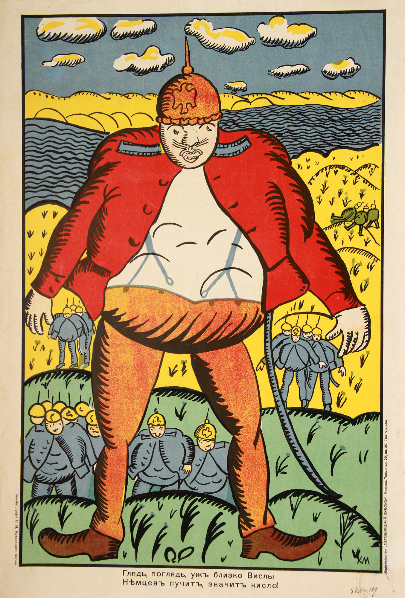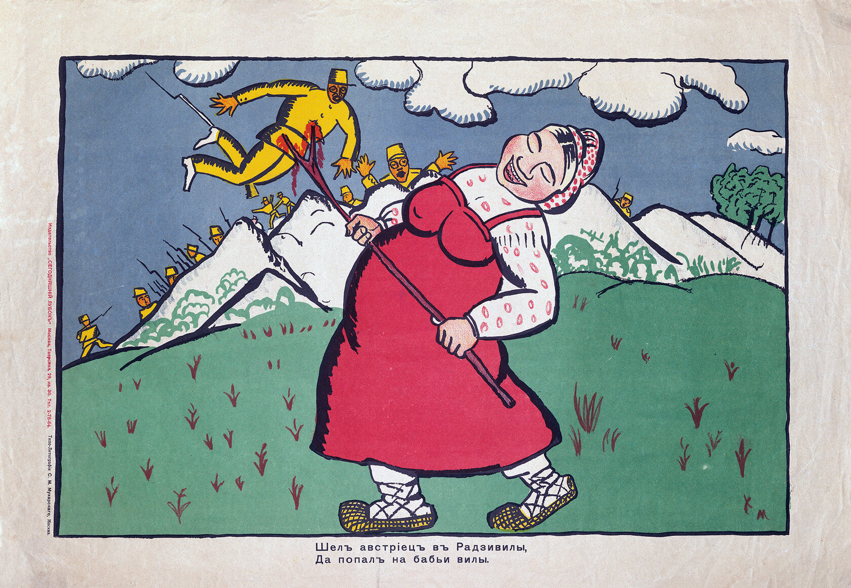 «Стихи Маяковского в значительной степени обусловили успех „Сегодняшнего лубка“. Грубоватые, частушечные по форме, они соответствовали природе народной картинки, возрождая традиции рифмовки текстов… Кроме того, Маяковский выступил и сам в роли художника, создав ряд блестящих работ. Некоторые из них подписаны монограммой „В.М.“ и даже „Маяковск.“, и авторство их сомнений не вызывает».
