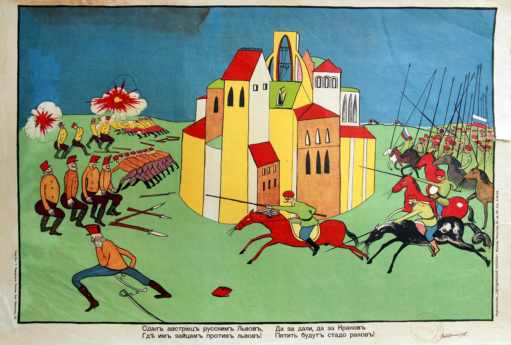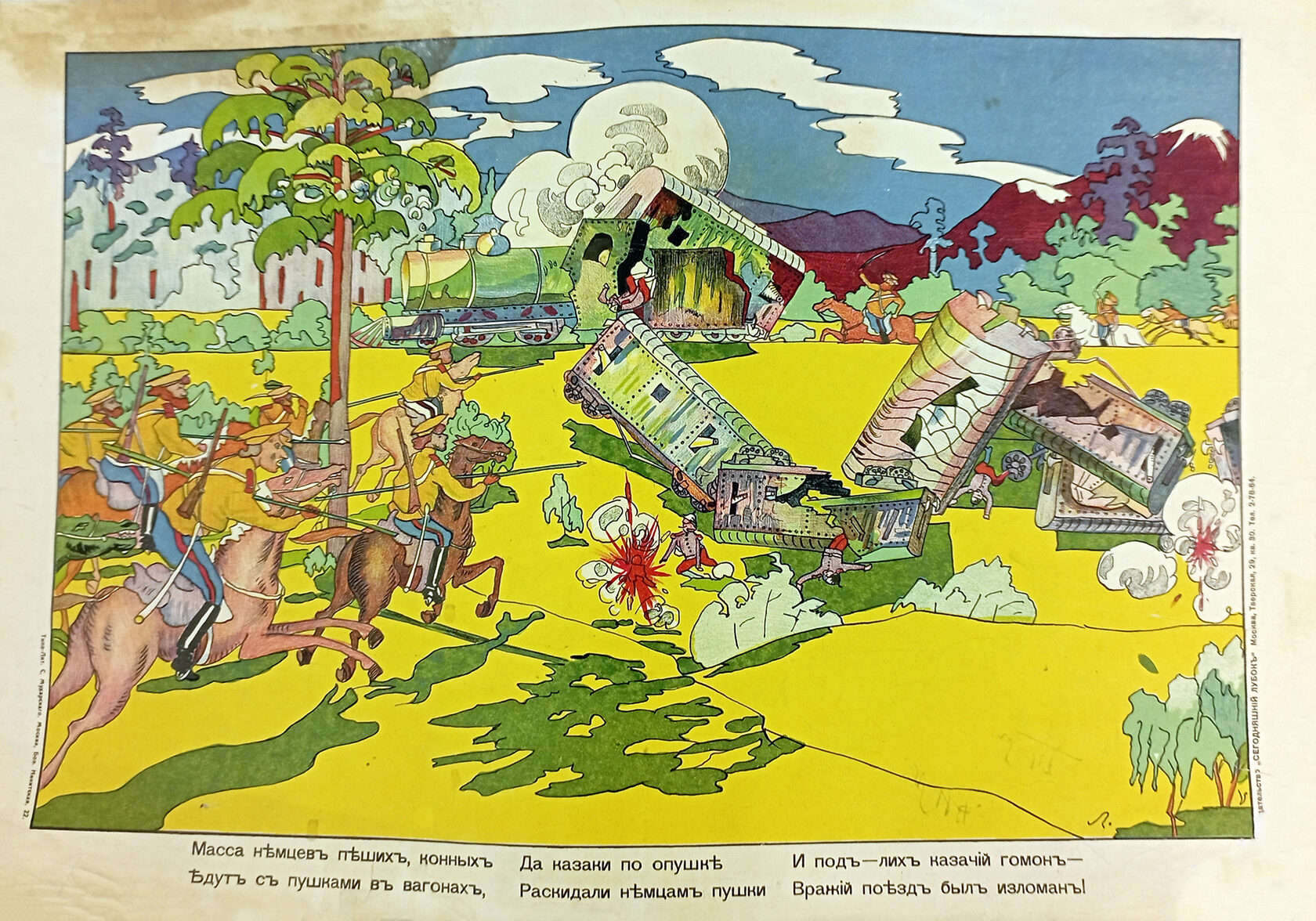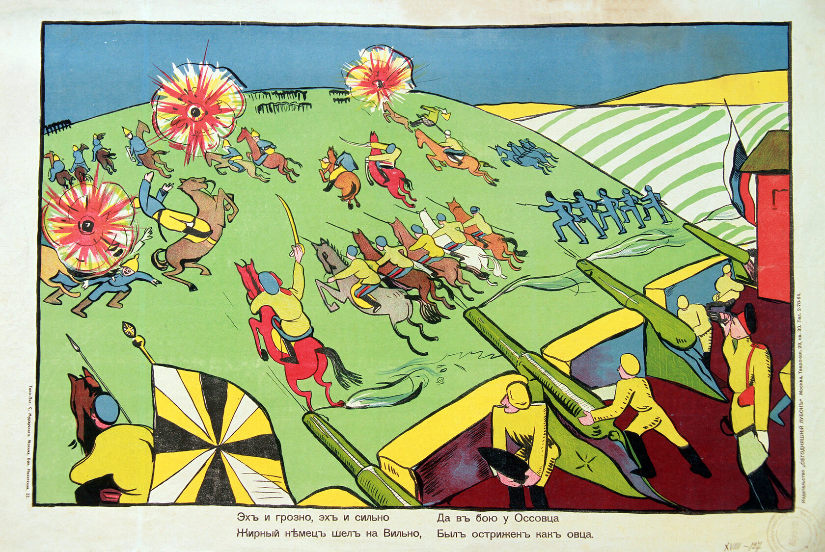 «Стихи Маяковского в значительной степени обусловили успех „Сегодняшнего лубка“. Грубоватые, частушечные по форме, они соответствовали природе народной картинки, возрождая традиции рифмовки текстов… Кроме того, Маяковский выступил и сам в роли художника, создав ряд блестящих работ. Некоторые из них подписаны монограммой „В.М.“ и даже „Маяковск.“, и авторство их сомнений не вызывает».