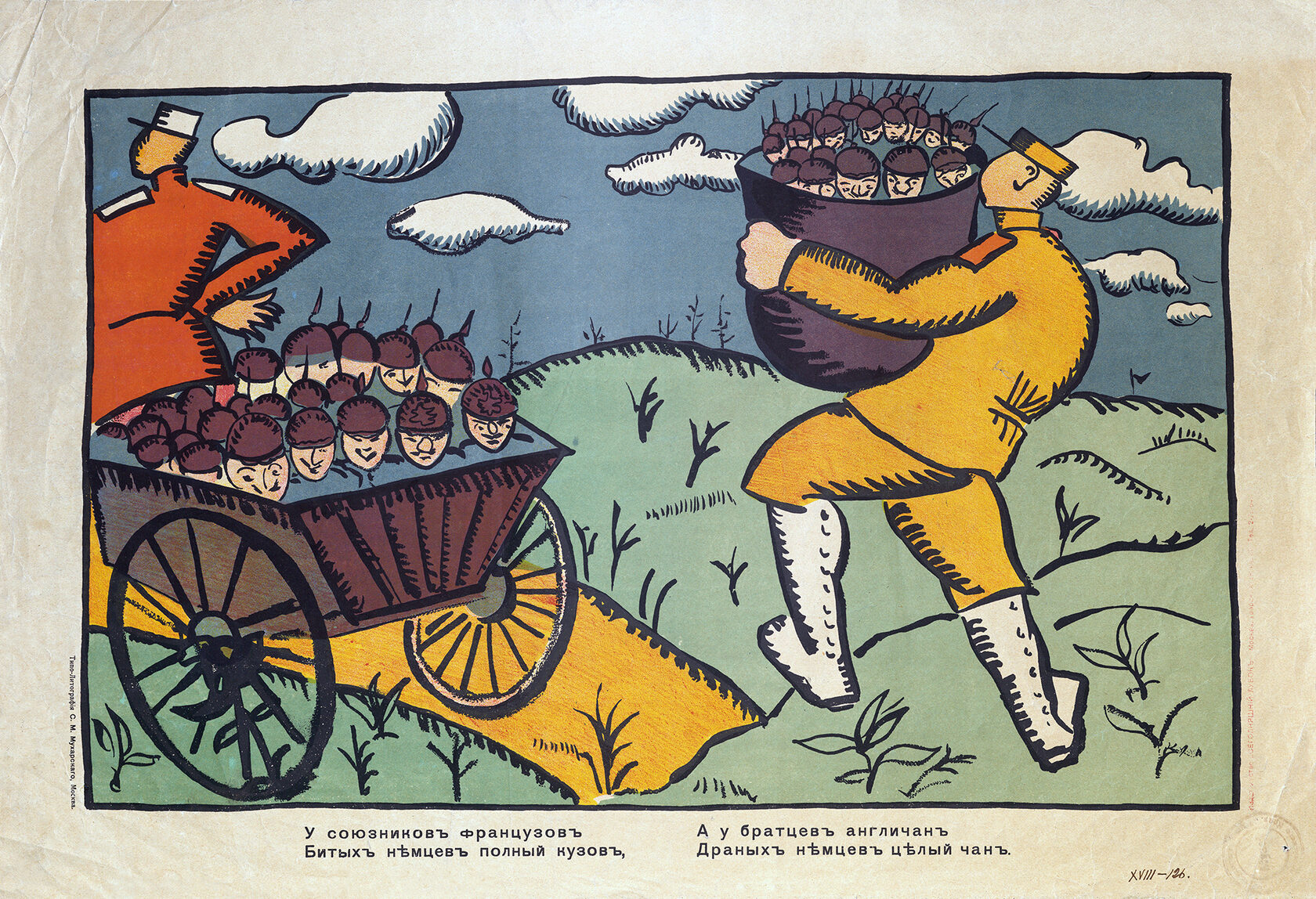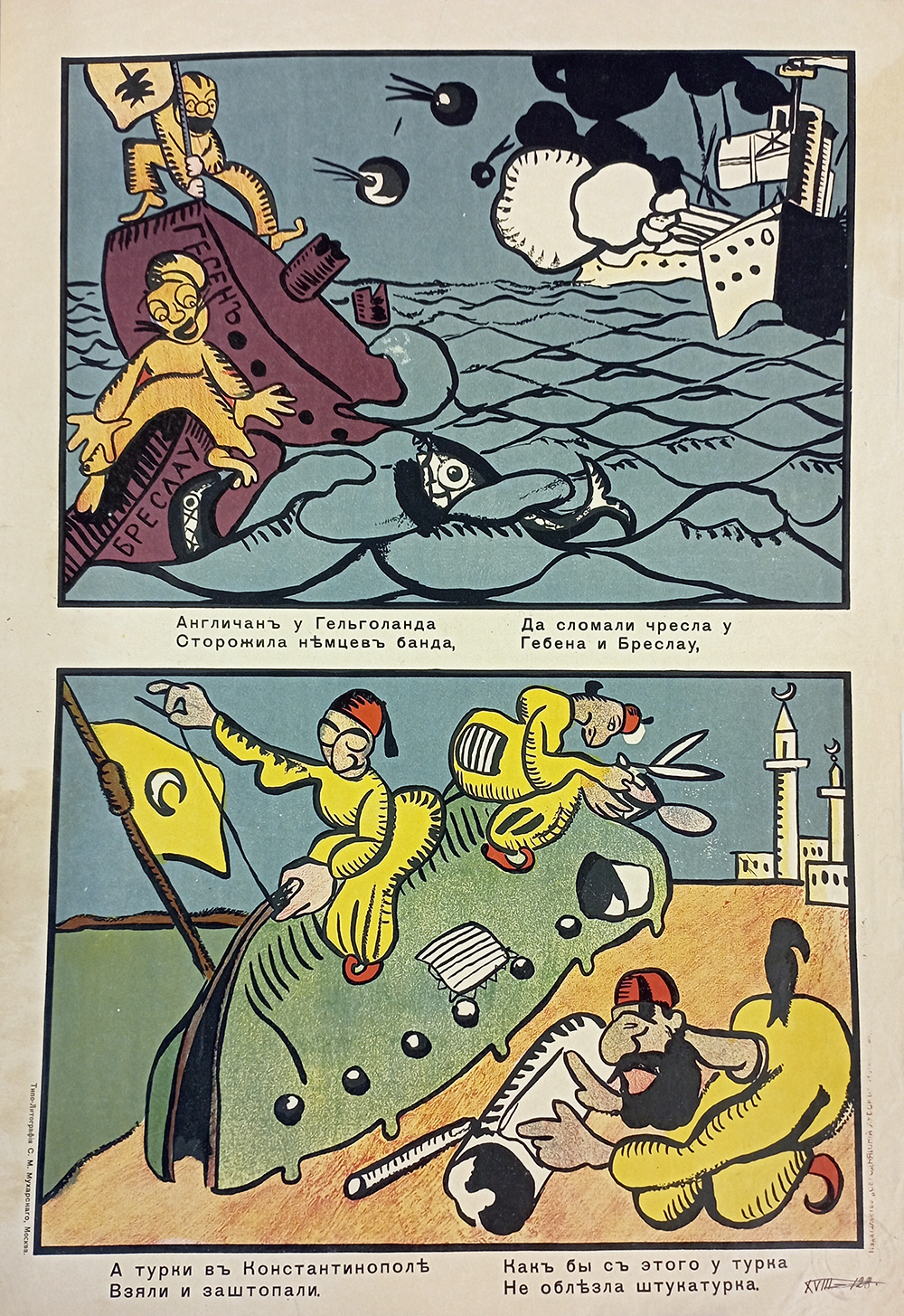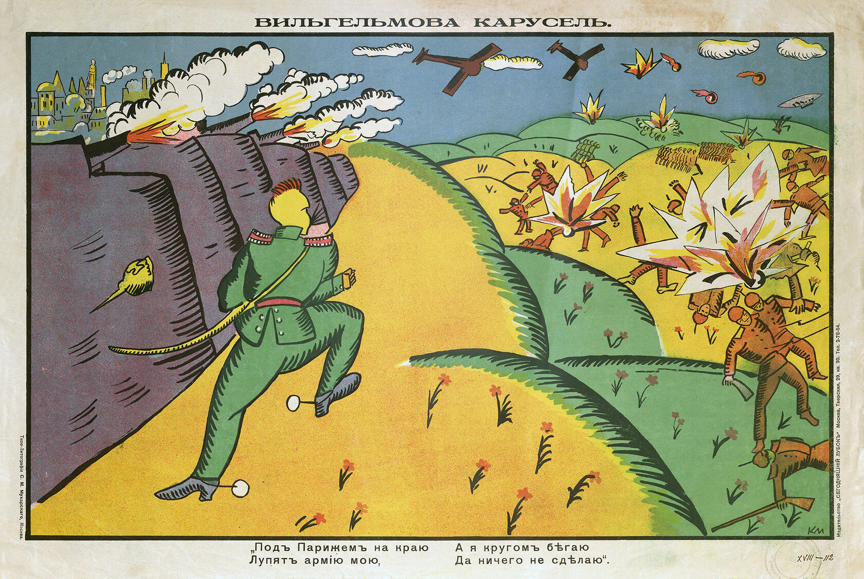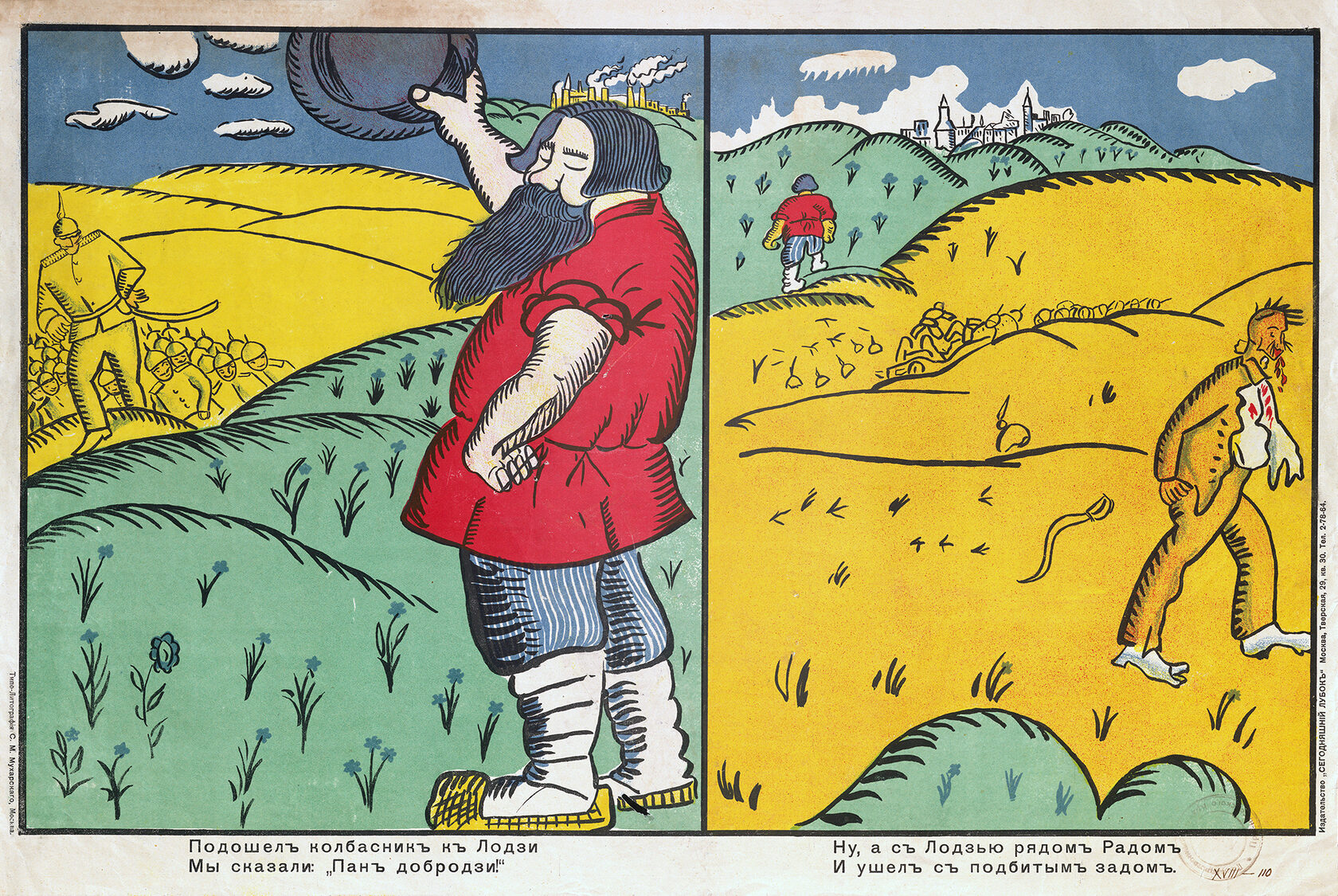 «Стихи Маяковского в значительной степени обусловили успех „Сегодняшнего лубка“. Грубоватые, частушечные по форме, они соответствовали природе народной картинки, возрождая традиции рифмовки текстов… Кроме того, Маяковский выступил и сам в роли художника, создав ряд блестящих работ. Некоторые из них подписаны монограммой „В.М.“ и даже „Маяковск.“, и авторство их сомнений не вызывает».